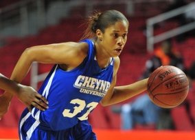 PSAC Student-Athlete Feature - Nadirah Brown Wednesday, January 25, 2012 12:36 PM NADIRAH BROWN Cheyney - Biology Major East Orange, N.J. / Willingboro HS Brown is a senior forward on women's basketball team who has been a key addition at Cheyney since transferring last year from Burlington County College. This year she leads the Lady Wolves in both scoring (12.9 ppg) and rebounding (7.8 ppg), with averages that rank 14th and seventh overall in the PSAC, respectively. In her initial campaign, she was among league leaders with 13.8 ppg and 8.5 rpg, and was recognized as a second-team All-PSAC Eastern Division member. What is the thing you’ve enjoyed most about college? Being a student-athlete and people on campus rooting for you and coming out showing support. What is the best advice you’ve ever been given? To be confident and have pride in everything you do. What is the biggest adjustment you had to make going from high school to college? Getting up on time for class after games the day before and learning to be responsible. What are your career plans? To attend nursing school and become a nurse practitioner specializing in obstetrics. Who is your favorite athlete and why? Dirk Nowitzki because I feel like we play the same position and carry out the same style of play. He is very versatile, can shoot, post, and take people off the dribble. What is your favorite pro sports team? The New York Giants and the Phoenix Suns. Among athletes in the family, where do you rate? I rate myself second after my brother who plays football in the PSAC (Nadirah's bother, Nadir Brown, is a wide receiver at California). He is more experienced than me... I am better than him at my sport but I cannot compete with him at football. Do you have any pregame rituals or superstitions? No I just go out and play and give it my all. What do you consider your most memorable athletic accomplishment -- individually or as a part of a team -- throughout your life? Scoring 1,000 points in college and always being a leader on my team. If I could go pro in any sport it would be: Soccer What person has had the most significant influence on you from an athletics perspective? My junior college coach Carolyn Jones. She has always been there for me and always made me do extra because she saw potential in me I didn’t even see in myself. She never gave up on me and I'm still so proud to have someone like her in my life. What is your top collegiate athletics memory? Last year on the second day of the UDC Thanksgiving Classic, we were playing against Georgian Court. In a tie game, I got a steal, drove to the basket and got fouled. I made both of them to give us the win and I also made all-tournament team. (In addition to the game-winning free throws, Brown scored 26 points and grabbed 17 rebounds in the victory). Words your coach says that you swear you can hear in your sleep: Stop whining. What’s on your Ipod during pregame? Wale Stuck on a deserted island, what three things would you bring? My cell phone, food, and a knife. If I could change one thing about the sport I play, it would be: To let the women have a 35 second shot clock. Who is your celebrity crush? Idris Elba My hidden talent is: Making funny faces. What is your favorite vacation spot? Jamaica I would be a lot more effective if I would spend less time: Worrying about things I cannot control. Sport I would look bad doing, and why: Cheerleading. I'm just not that type of girl. The most addictive snack food for me is: Nacho cheese sunflower seeds.