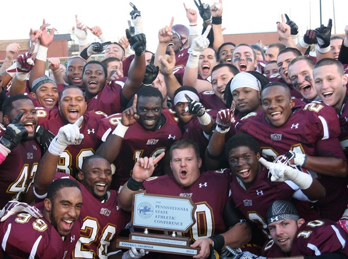 Lock Haven, Pa - With a 31-28 victory over West Chester, Bloomsburg clinched the top seed in the PSAC football Eastern Division and will host Slippery Rock, the No. 1 Western seed for the 2013 PSAC Football Championship on Saturday, November 16. Slippery Rock earned the Western Division title with a 55-21 win over Seton Hill.